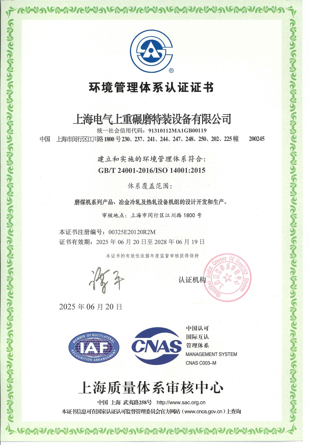 环境管理体系证书(GBT 24001- 2016 ISO 140012015 2025-06-20至2028-06-19)