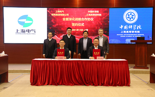 1月14日上午,上海电气核电集团有限公司(以下简称“核电集团”)与中国科学院上海高等研究院(以下简称“上海高研院”)在上海签署战略合作协议,并同步举行上海电气1.3GHz超导腔模组及800kW电子束流收集器上线就位仪式。上海电气集团党委书记、董事长吴磊,上海科技大学校长、中国科学院院士封东来,中国工程院院士、上海光源科学中心主任赵振堂,上海高研院院长黄政仁出席。