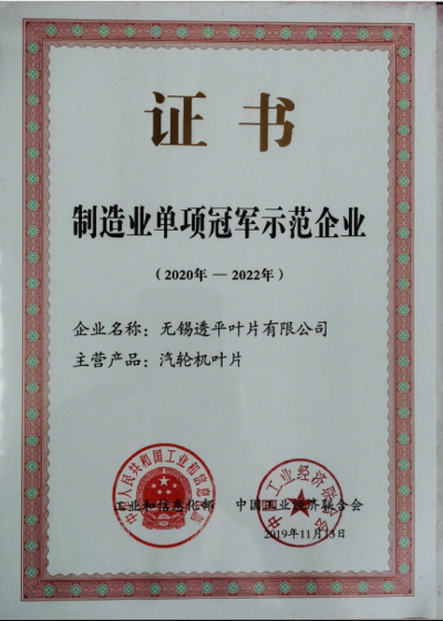 制造业单项冠军示范企业