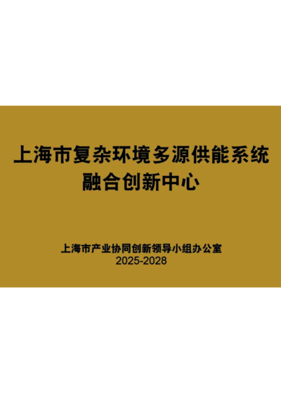 获2025-2028上海市复杂环境多源供能系统融合创新中心