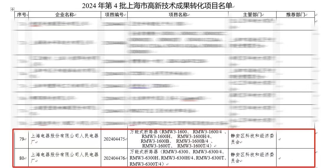 近日,上海市科学技术委员会正式公布《关于2024年第4批上海市高新技术成果转化项目认定的公告》。人民电器厂申报的RMW3系列产品项目经受理审核、专家评审和社会公示等程序,成功荣获上海市高新技术成果转化项目认定!