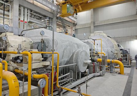 阿克塞汇东新能源“光热+光伏”试点项目总装机容量750兆瓦,其中光热发电110兆瓦、光伏发电640兆瓦。国家首批“光热+光伏”示范电站,同时也是国内在建单机规模最大的塔式光热发电项目、甘肃省列重大项目、以及国家“沙漠、戈壁、荒漠”大型太阳能热发电基地示范项目之一。本项目选用了我厂自主设计的双缸单排汽结构光热汽轮机,机组性能得到业主肯定。