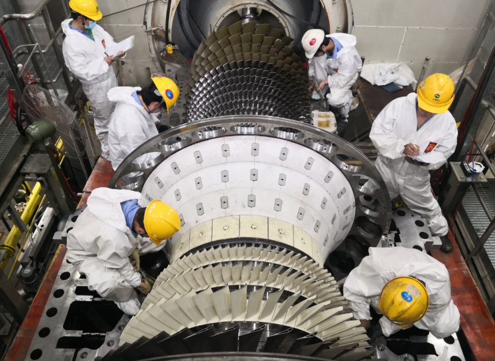 上海电气依托贯穿研发、设计、制造、服务的全面自主化能力,实现重型燃气轮机产品开发和长协服务的历史性突破,成为国内首家能够独立开展产品跨代升级和深度检修服务的重型燃气轮机供应商。图为上海电气长协团队正在开展F级燃气轮机现场检修。上海电气供图