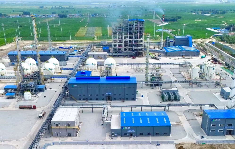 上海电气集成自身新能源、智能电网、绿色化工等领域全产业链技术能力,围绕贯通绿色燃料产业链,率先探索构建“绿电-绿氢-绿醇-绿色应用”的一体化产业生态。图为上海电气在吉林洮南打造的国内首个绿色甲醇示范项目。上海电气供图