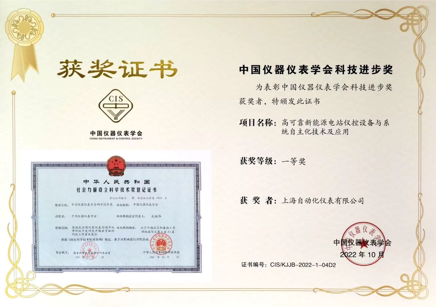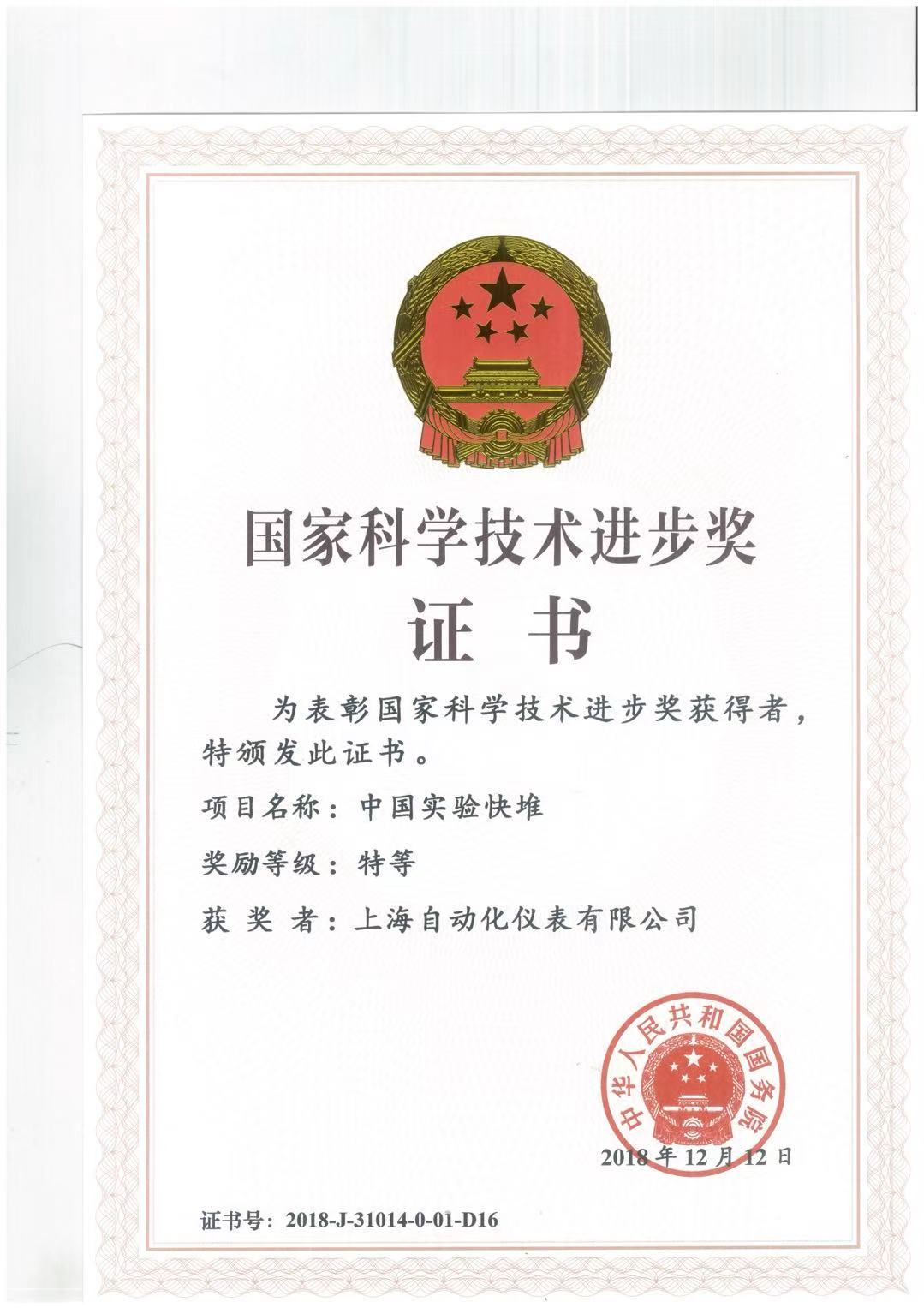 中国仪器仪表学会科技进步一等奖