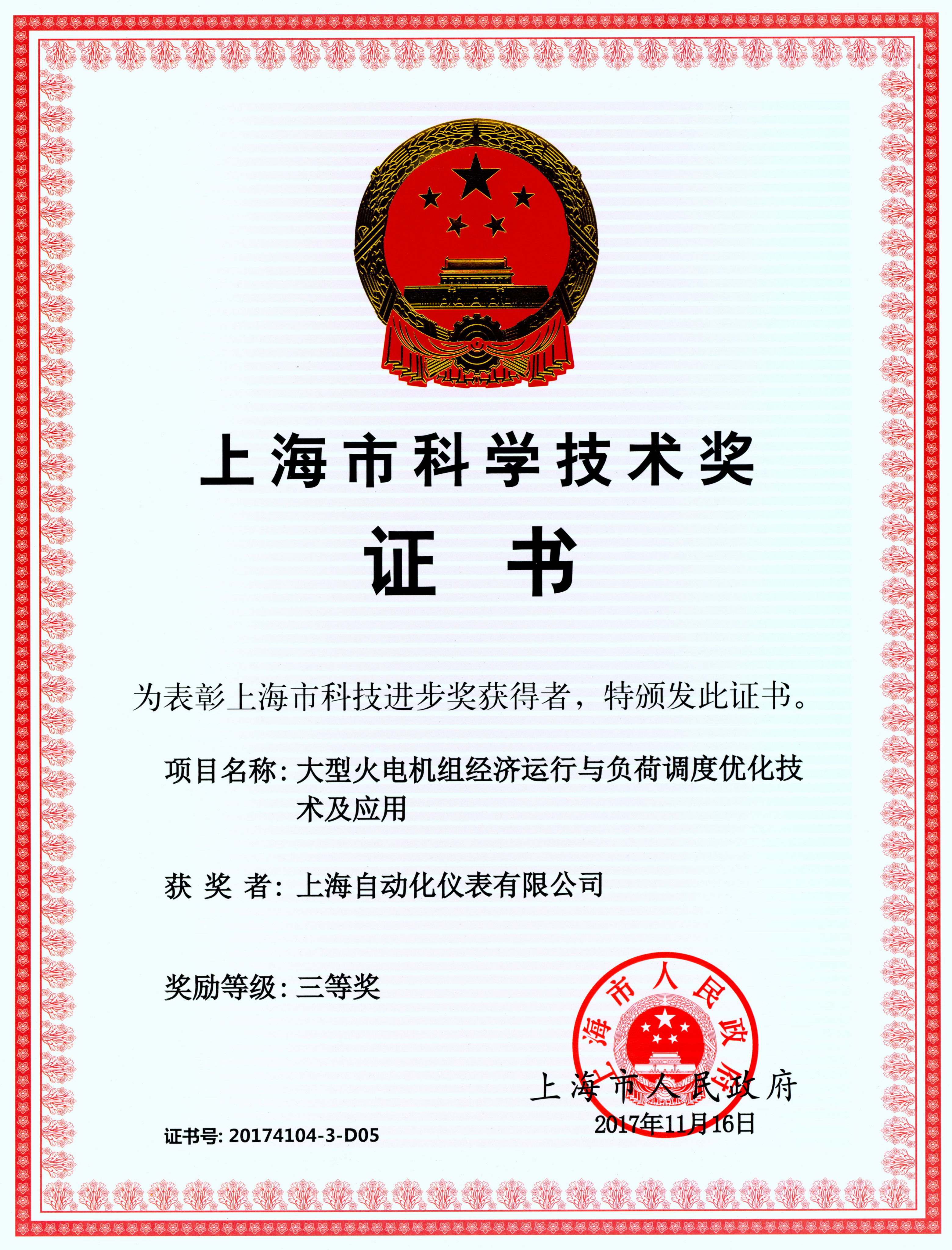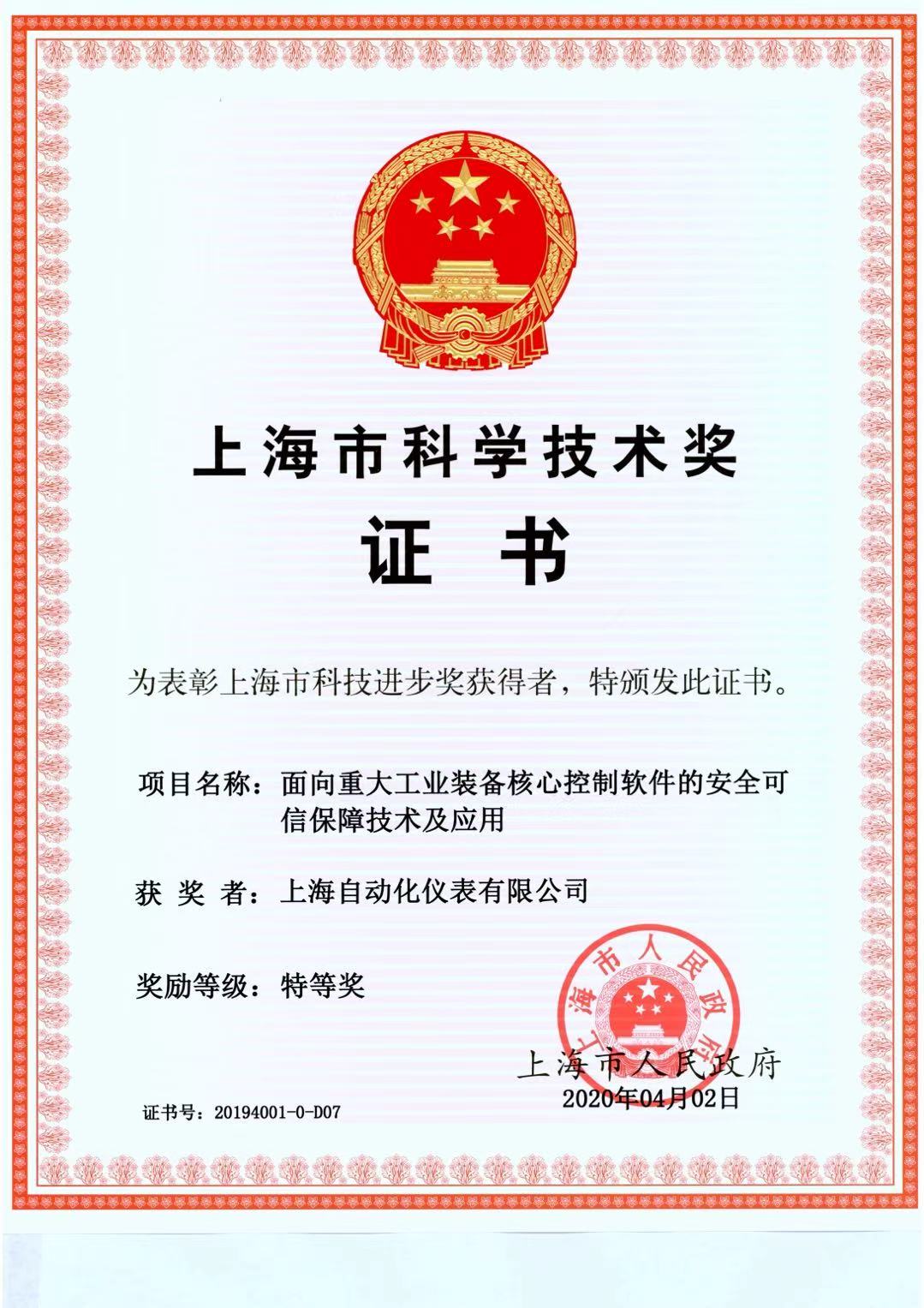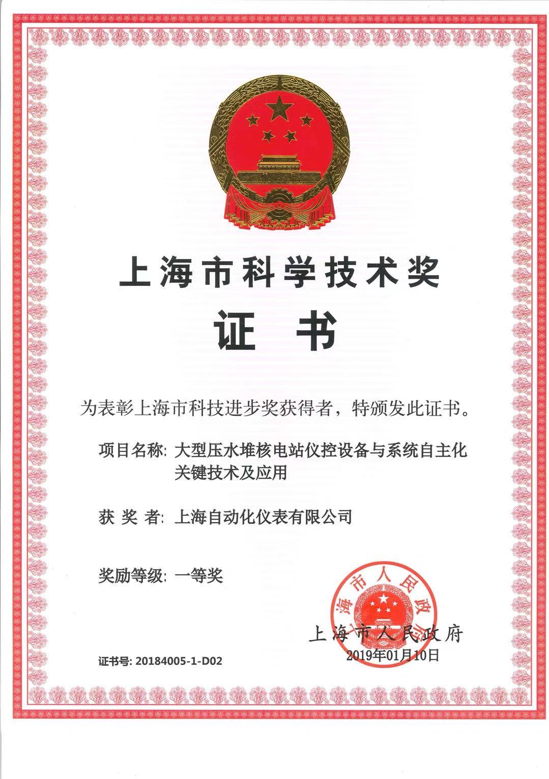 上海市科学技术进步奖 一等奖