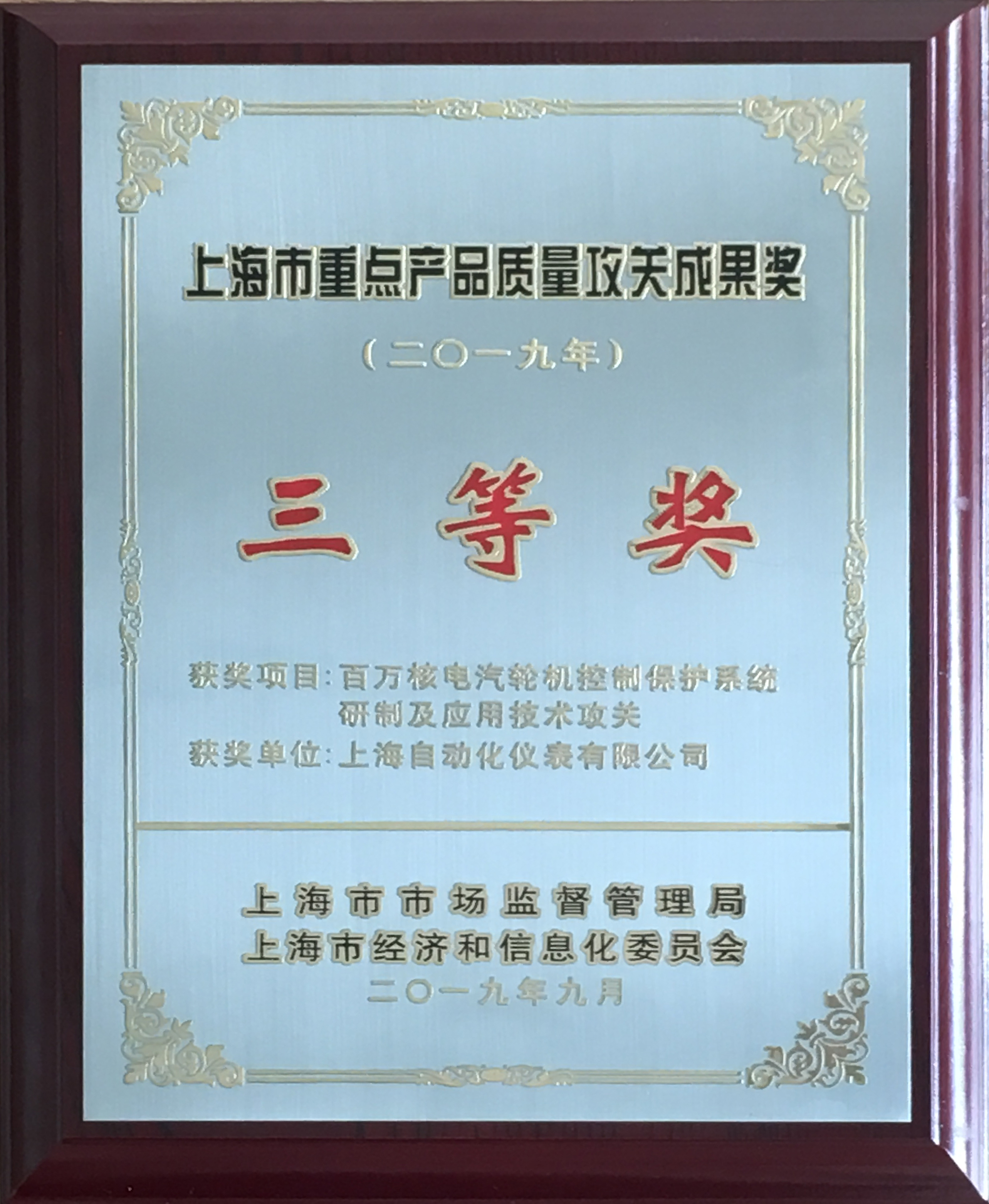 上海市重点产品质量攻关成果奖 三等奖
