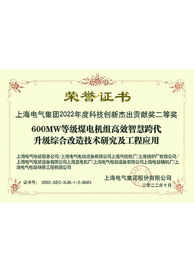 上海电气集团2022年度科技创新杰出贡献奖二等奖
