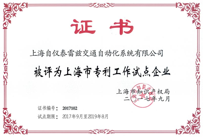 上海市专利工作试点企业(公司已更名为:上海电气集团交通自动化系统有限公司)